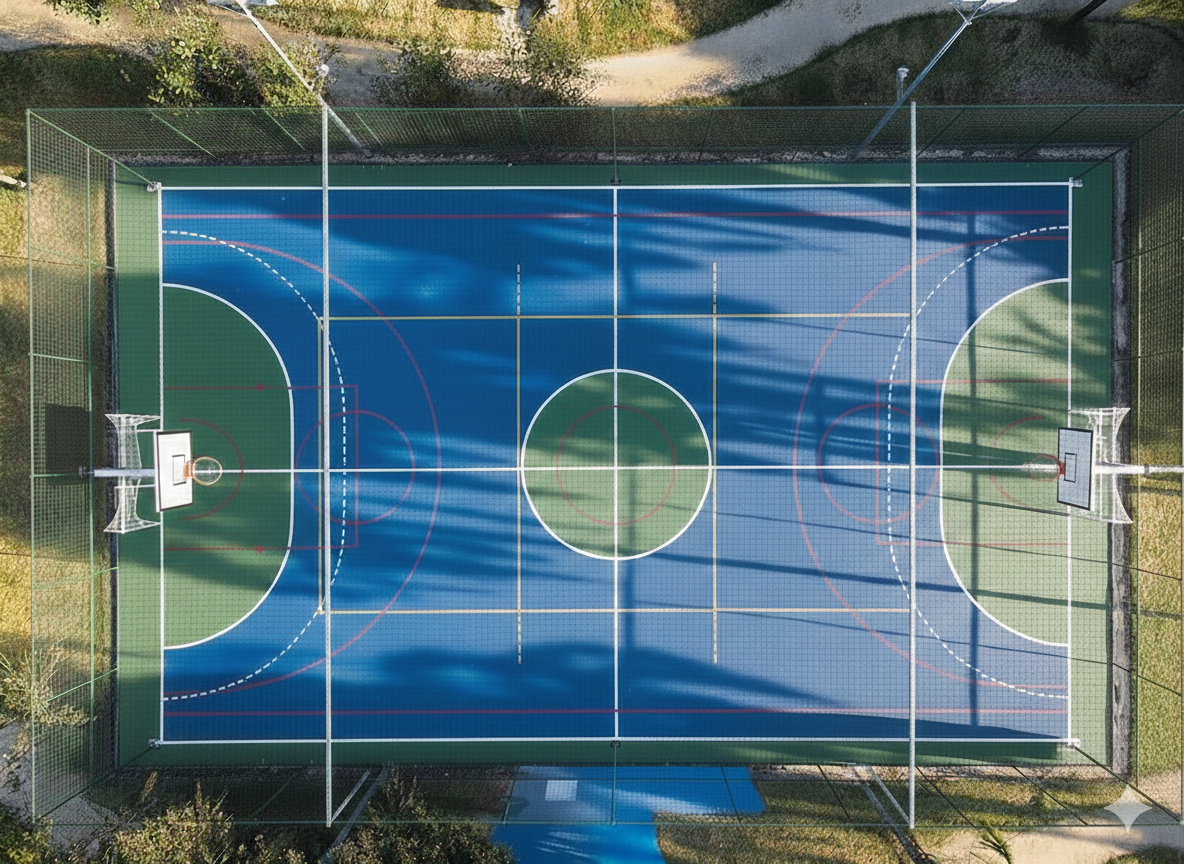 Multisport Arena “SP-FUT-TB-GL“(16x8mt),em metal com tratamento anticorrosivo e tabela, 2 balizas incorporadas de 1,20×0,80mt e pavimento “Patmos Master”.Incluí redes/prumos nos 4 lados mais rede superior.
