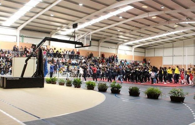Esta escola de Aveiro contou com o apoio da equipa da Sports Partner para ter estas balizas de ferro redondas que podem ser utilizadas para a prática de futsal e andebol.